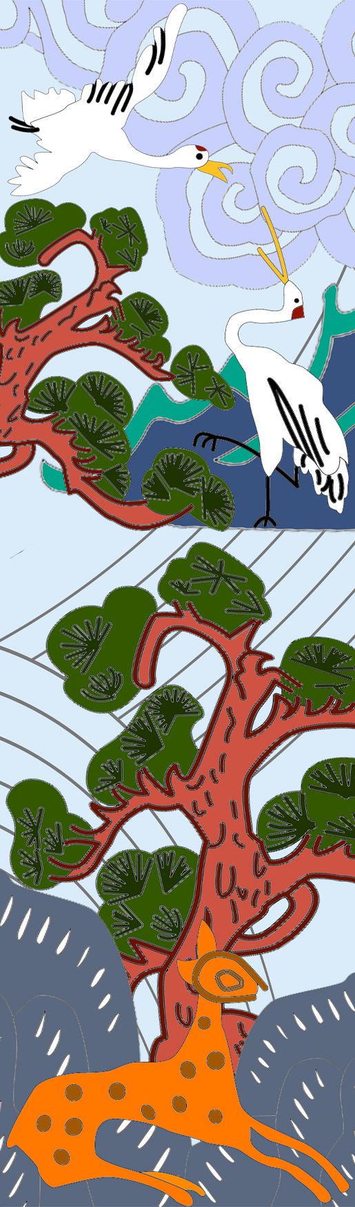 To visually express the ideal nature that people think of, I used 10 natural objects that Korean ancestors worshiped. These 10 are mountains, water, clouds, rocks, sun, cranes, deer, turtles, pine trees, and herbs. Korean ancestors applied these images to their products and thus did not forget the sacredness of nature. And through this, they hoped that humans would become a part of nature. This is the reason that I also used these 10 natural objects in my work in the hope that modern people will not forget the beauty of nature as we envision in our minds.