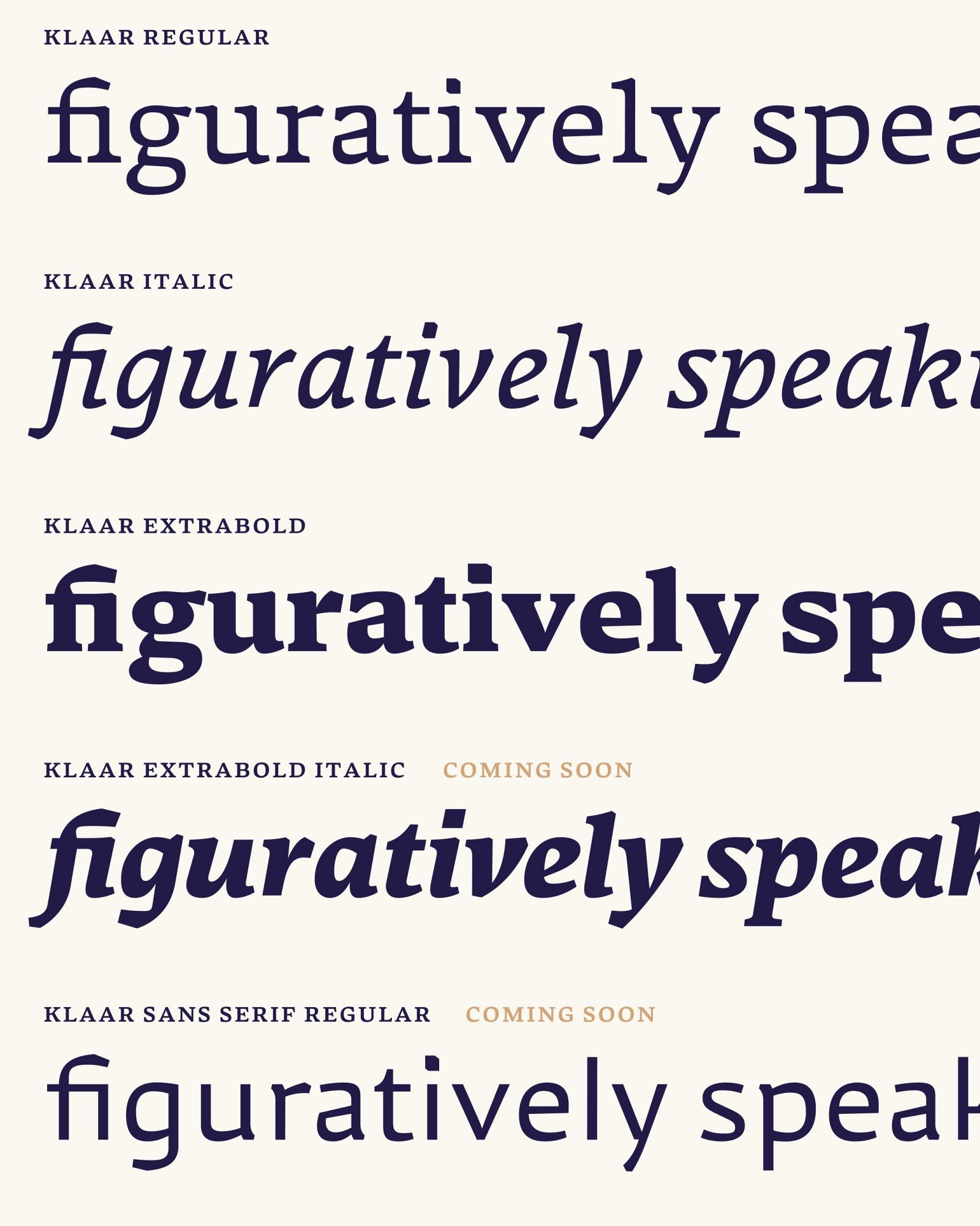The name of my typeface is Klaar. It is a Dutch word that can be intended as “clear” or “ready”, both of which my typeface family had to be by the end of the semester. The intended usecase is for any kind of instructions, which is why I felt the name was fitting. The circled figures, arrows and the good legibility in all sizes support this context.