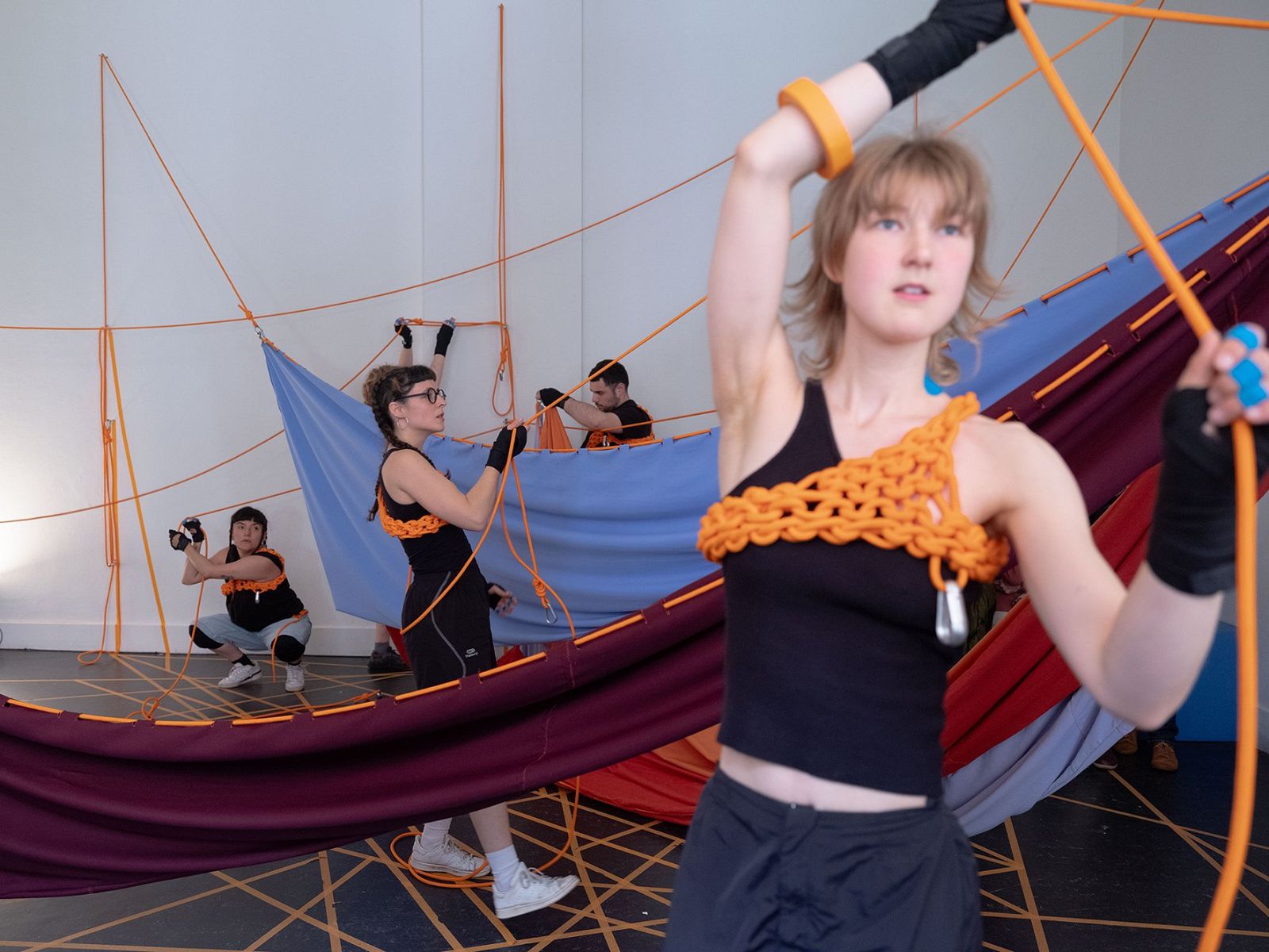 “Risking entanglement” is a site-specific installation, a playground where we exercise interdependence and rehearse ‘suspension’, not as a way of escaping modernity but as a method of reflection.